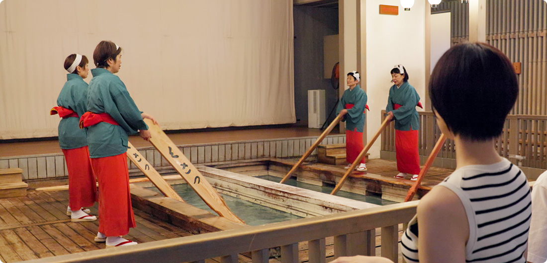 草津名物、歴史ある「湯もみ」を一緒に鑑賞できます。